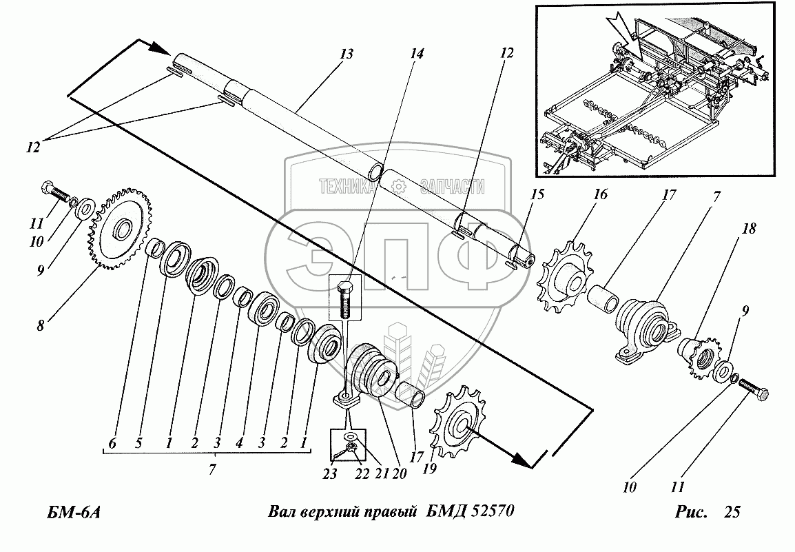 Каталог запасных частей к технике: ТеКЗ БМ-6А (2005). Вал верхний правый (БМД52570)