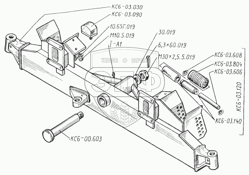 Каталог запасных частей к технике: ТКЗ КС-6Б. Балка моста управляемых колес. Штырь
