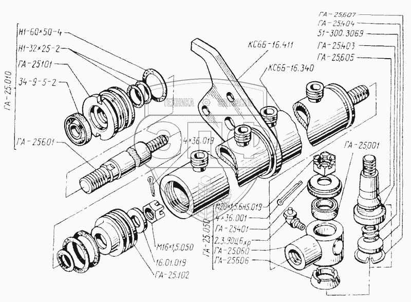 Каталог запасных частей к технике: ТКЗ КС-6Б. Гидроцилиндр в сборе