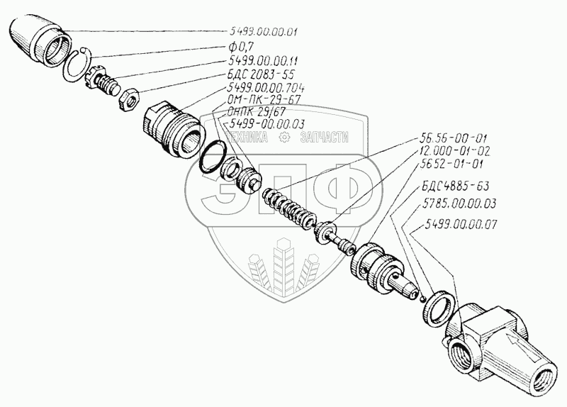 Каталог запасных частей к технике: ТКЗ КС-6Б. Клапан предохранительный