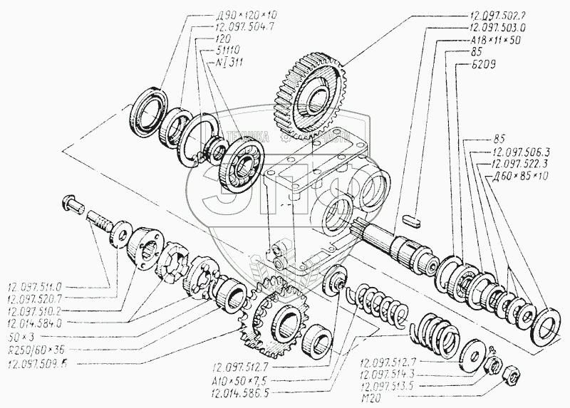 Каталог запасных частей к технике: ТКЗ КС-6Б. Редуктор. Вал и шестерни