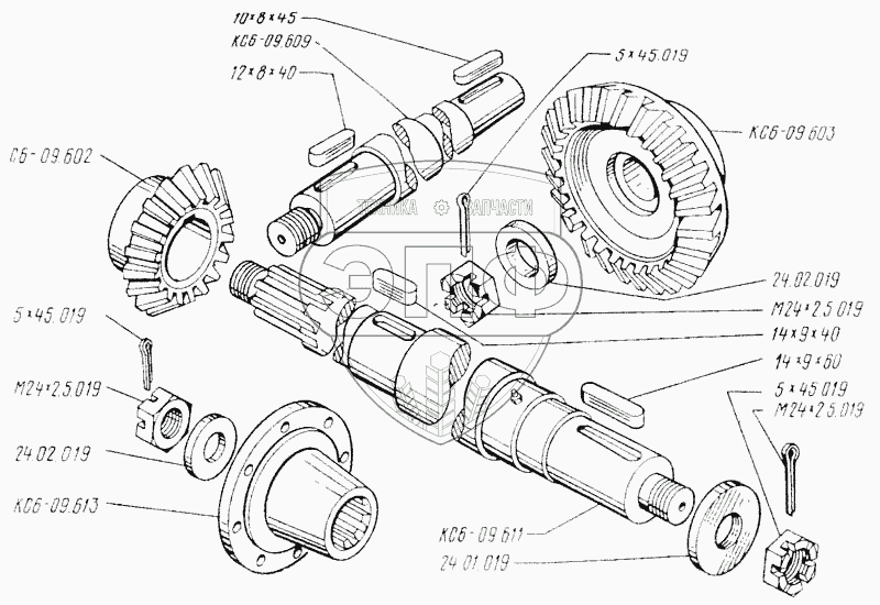 Каталог запасных частей к технике: ТКЗ КС-6Б. Редуктор. Валы и шестерни