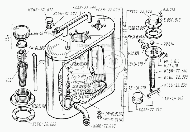 Каталог запасных частей к технике: ТКЗ КС-6Б. Резервуар гидротрансмиссии