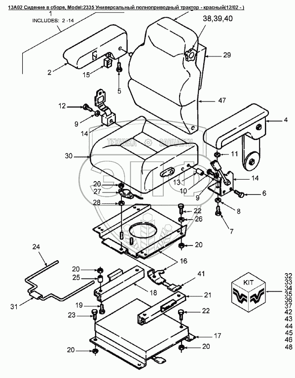 Каталог запасных частей к технике: Versatile серии 2000. 13A02 Сидение в сборе