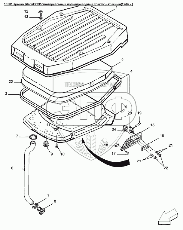 Каталог запасных частей к технике: Versatile серии 2000. 15E01 Крыша
