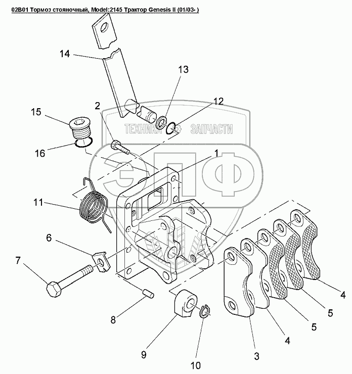 Каталог запасных частей к технике: Versatile серии GENESIS. 02B01 Тормоз стояночный