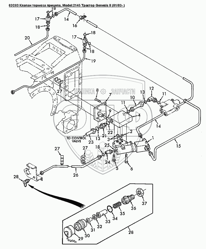 Каталог запасных частей к технике: Versatile серии GENESIS. 02C03 Клапан тормоза прицепа