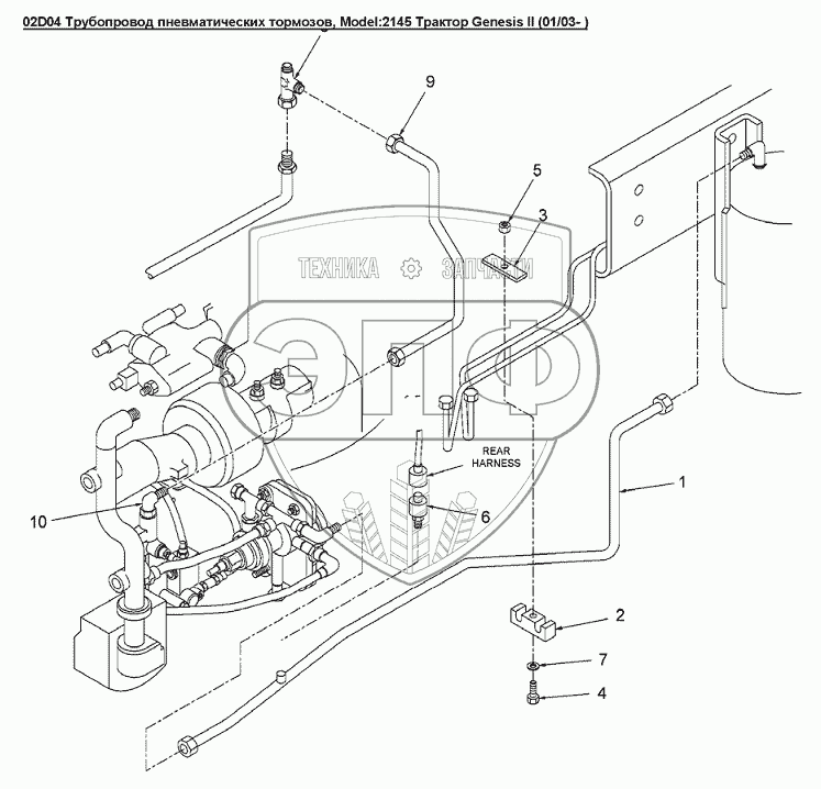 Каталог запасных частей к технике: Versatile серии GENESIS. 02D04 Трубопровод пневматических тормозов