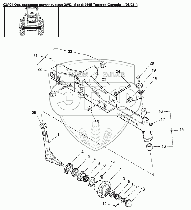 Каталог запасных частей к технике: Versatile серии GENESIS. 03A01 Ось передняя регулируемая 2WD