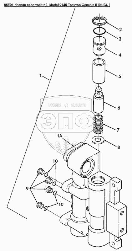 Каталог запасных частей к технике: Versatile серии GENESIS. 05E01 Клапан перепускной