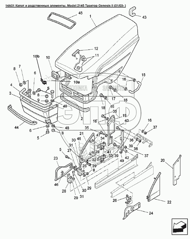 Каталог запасных частей к технике: Versatile серии GENESIS. 14A01 Капот и родственные элементы