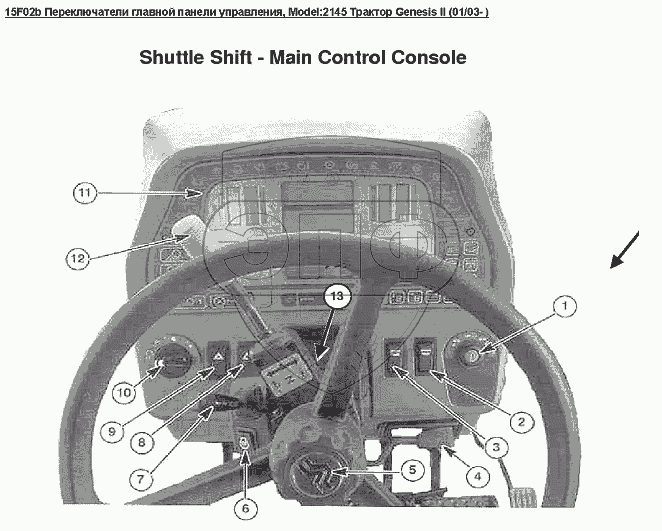 Каталог запасных частей к технике: Versatile серии GENESIS. 15F02b Переключатели главной панели управления