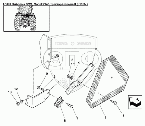 Каталог запасных частей к технике: Versatile серии GENESIS. 17B01 Эмблема SMV
