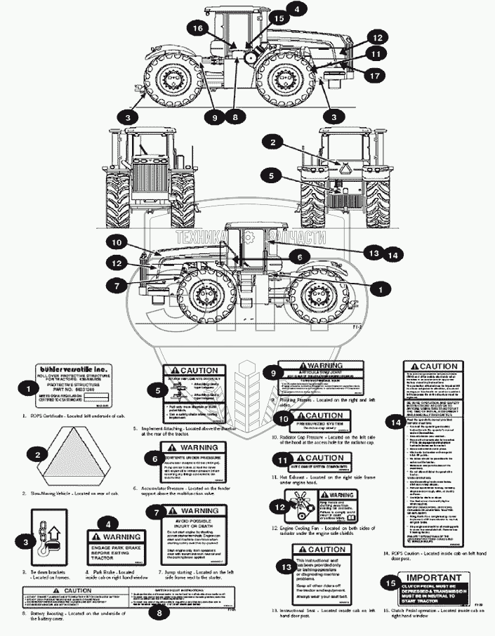Каталог запасных частей к технике: Versatile серии HHT. 8DCL01 HHP Информационные таблички
