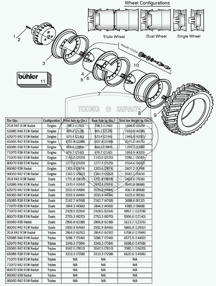 Каталог запасных частей к технике: Versatile серии HHT. 9ATW01 Конфигурации колес