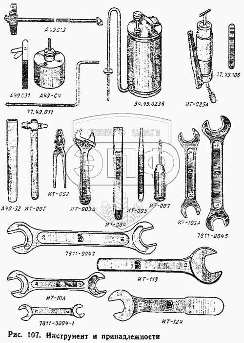 Каталог запасных частей к технике: ВгТЗ ДТ-75М. Инструмент и принадлежности