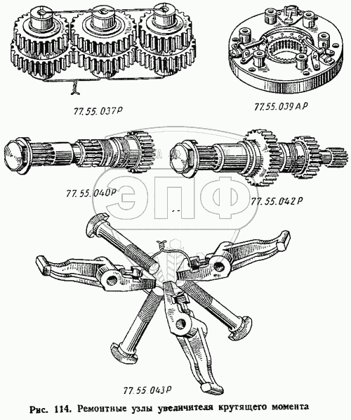| 77.55.037Р | 77.55.037Р | Комплект блоков шестерен в сборе с осью, фиксатором и пружиной | Нет на складе | |
