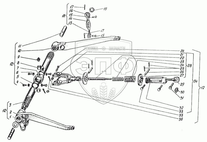 Каталог запасных частей к технике: ВгТЗ ДТ-75МВ. Механизм навески. Стяжка