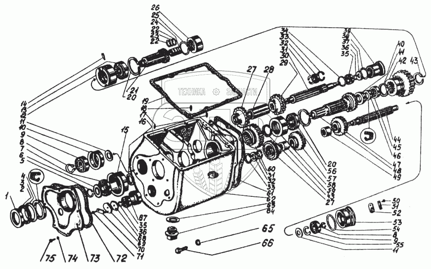 Каталог запасных частей к технике: ВгТЗ ДТ-75МВ. Реверс-редуктор. Валы и шестерни