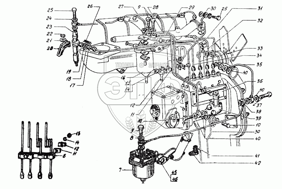 | 28 | 41-15С23-1 | Топливопровод от фильтра к топливному насосу | Нет на складе | |