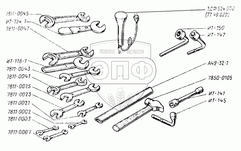 Каталог запасных частей к технике: ВгТЗ ДТ-75Н. Комплект ЗИП. Ключи
