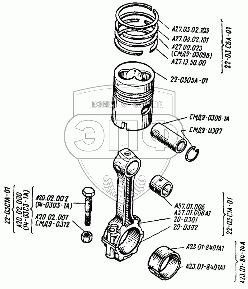 Каталог запасных частей к технике: ВгТЗ ДТ-75Н. Поршень с шатуном