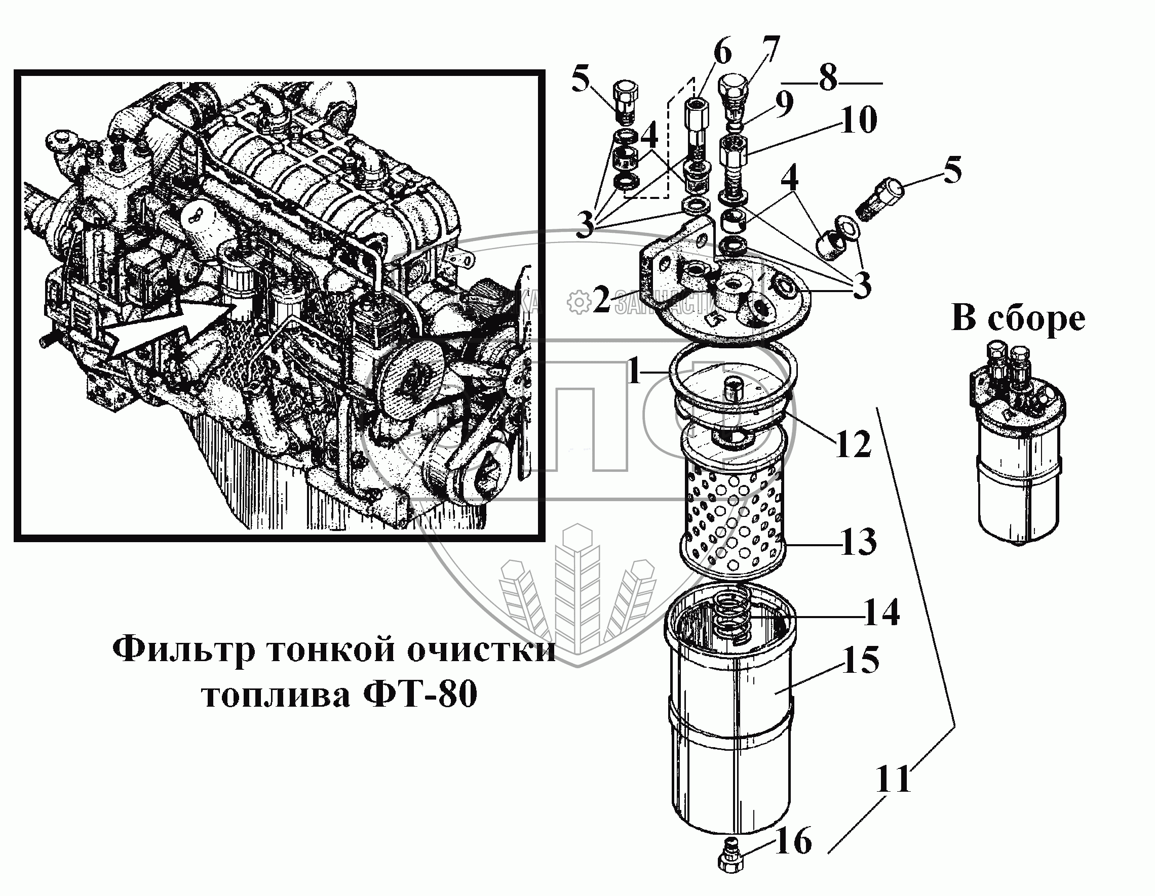 Каталог запасных частей к технике: ВгТЗ ВТ-100Д. Фильтр тонкой очистки топлива ФТ-80