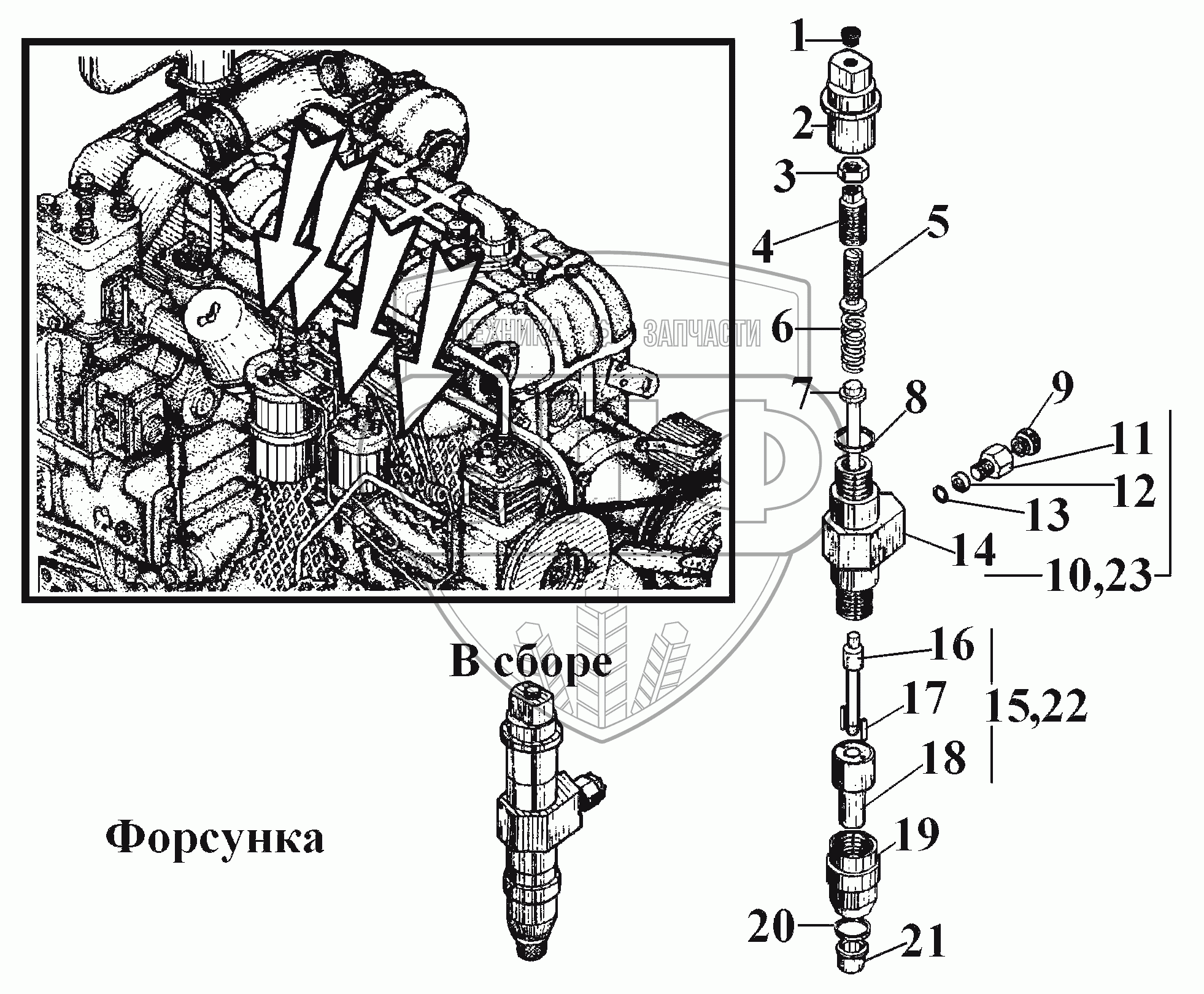 Каталог запасных частей к технике: ВгТЗ ВТ-100Д. Форсунка