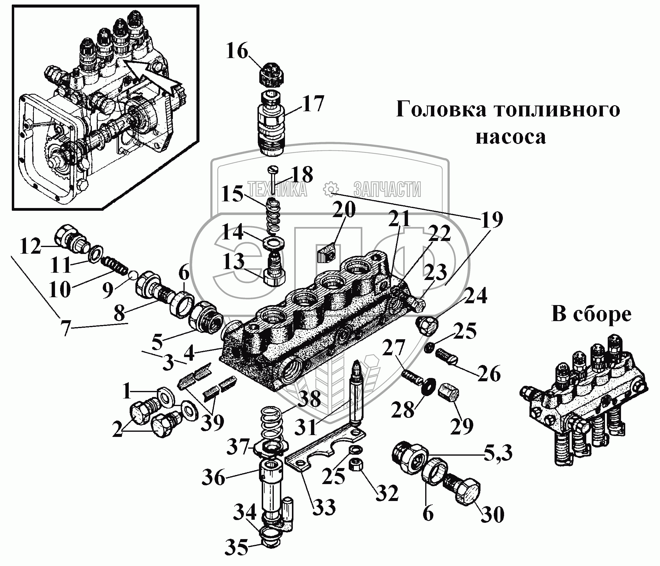 Каталог запасных частей к технике: ВгТЗ ВТ-100Д. Головка топливного насоса
