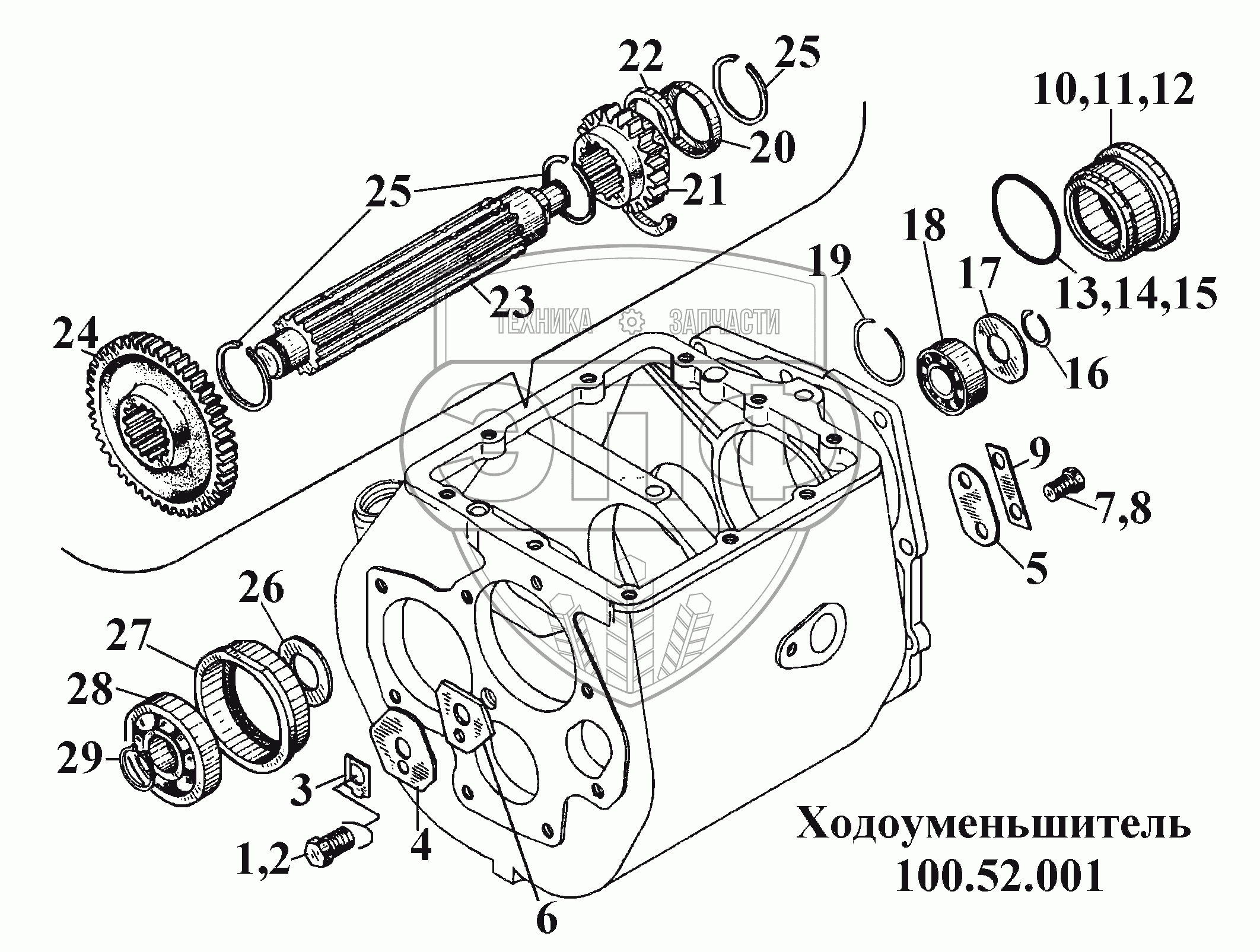 Каталог запасных частей к технике: ВгТЗ ВТ-100Д. Ходоуменьшитель 100.52.001 (3)