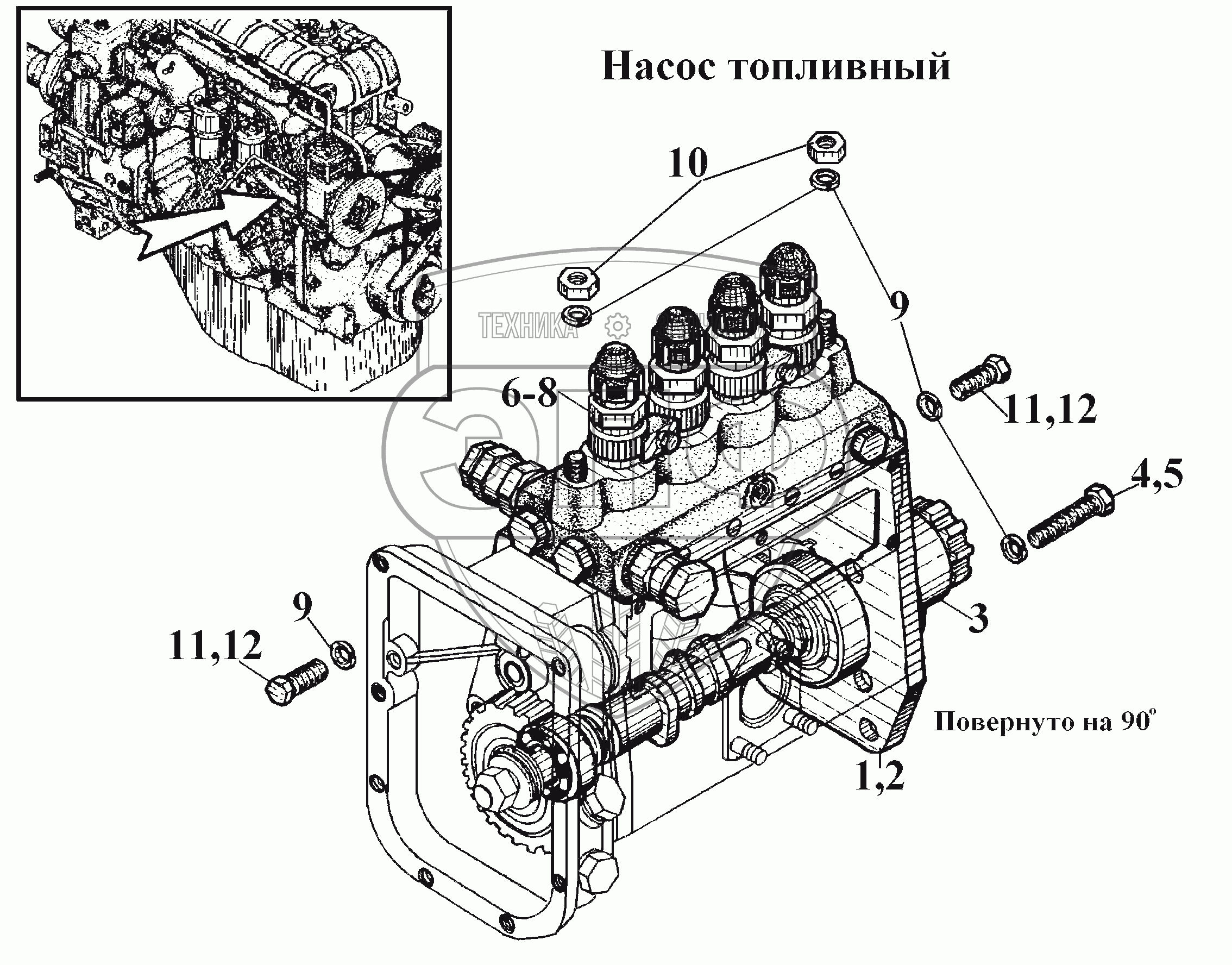 Каталог запасных частей к технике: ВгТЗ ВТ-100Д. Насос топливный (2)