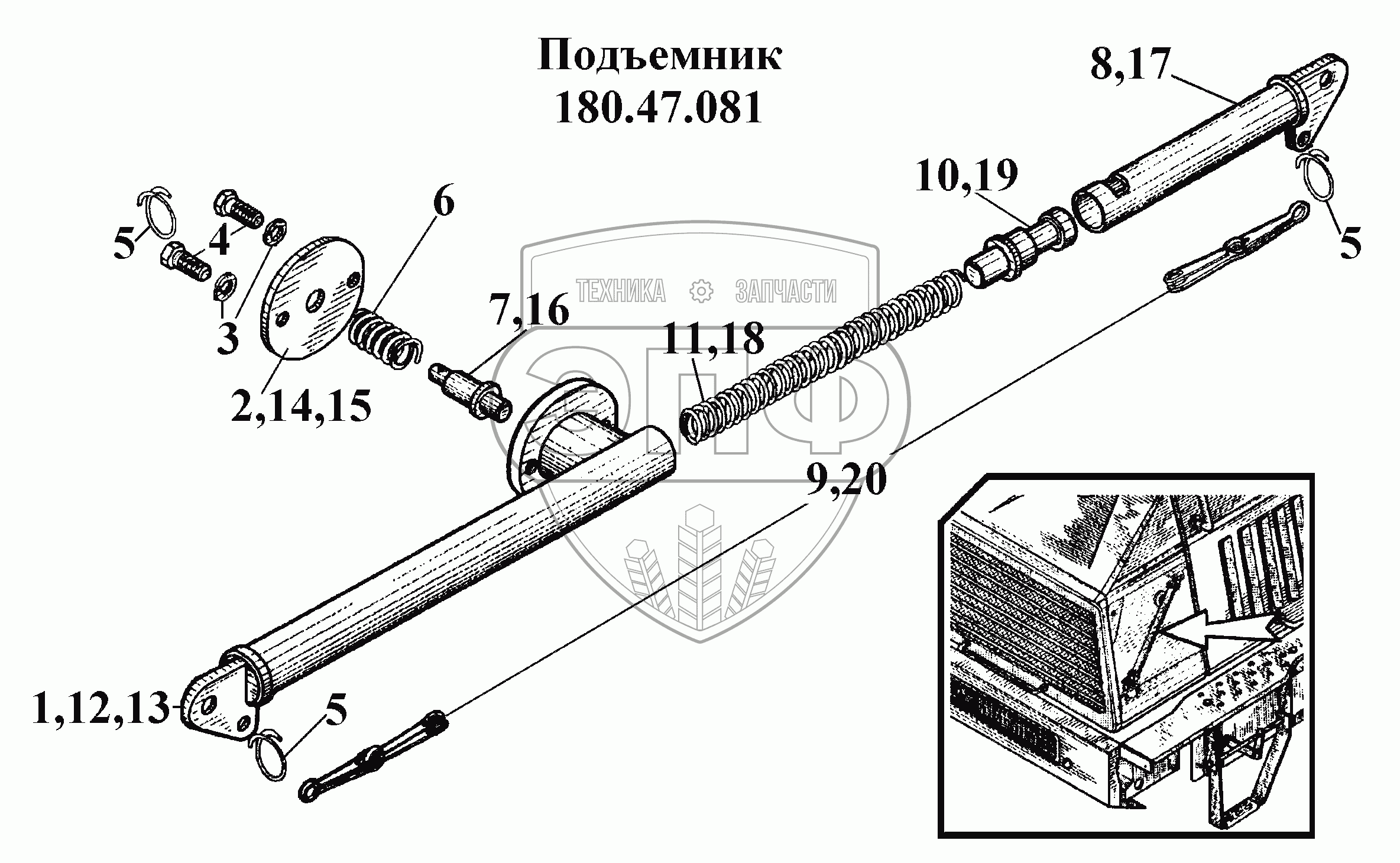 Каталог запасных частей к технике: ВгТЗ ВТ-100Д. Подъемник (1)