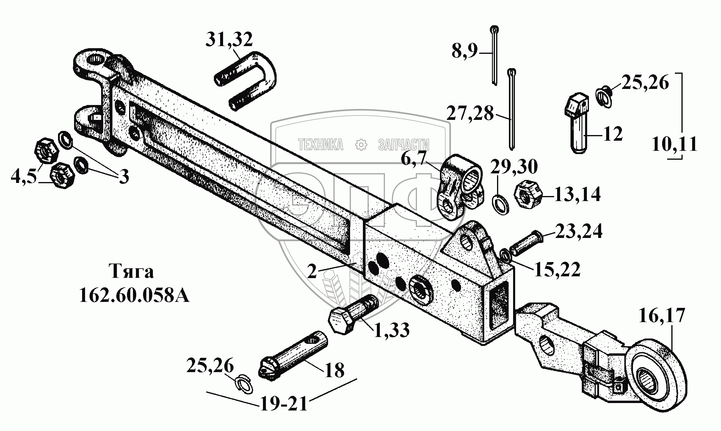 Каталог запасных частей к технике: ВгТЗ ВТ-100Д. Тяга 162.60.058А