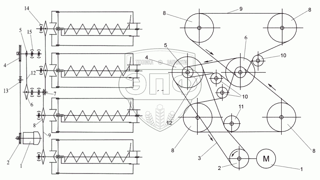 Каталог запасных частей к технике: Воронежсельмаш ПТ-600. Кинематическая схема
