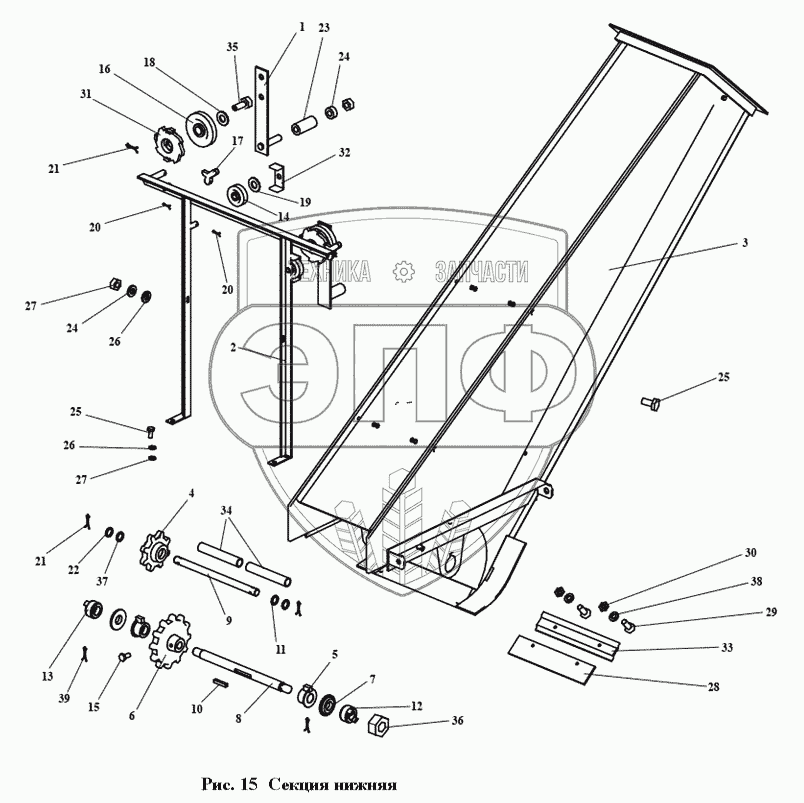 Каталог запасных частей к технике: Воронежсельмаш ПЗМ-80. ЗПМ 05.000 Секция нижняя