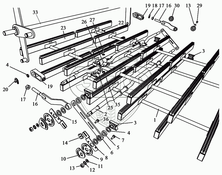 Каталог запасных частей к технике: Воронежсельмаш ЗВС-20А. Механизма очистки решет нижнего стана