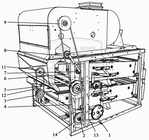 Каталог запасных частей к технике: Воронежсельмаш ЗВС-20А. Схема расположения ремней