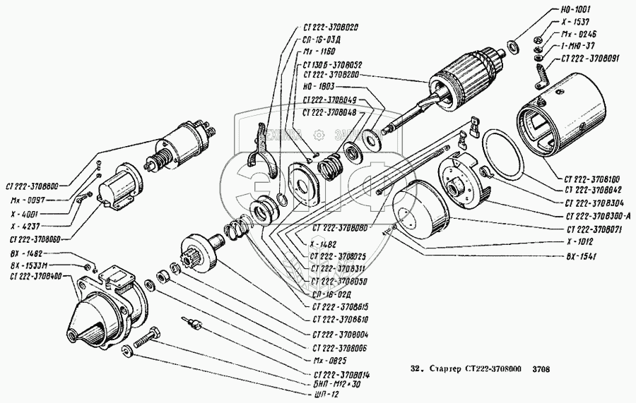 Каталог запасных частей к технике: ВТЗ Т-25А. Стартер СТ222 -3708000