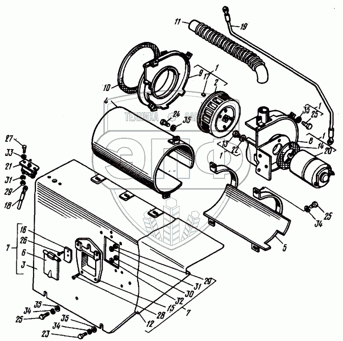 Каталог запасных частей к технике: ВТЗ Т-30A-80. Отопитель (вентилятор)
