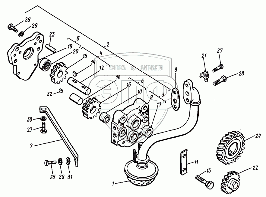 Каталог запасных частей к технике: ВТЗ Т-30A-80. Приемник масляного насоса. Насос масляный