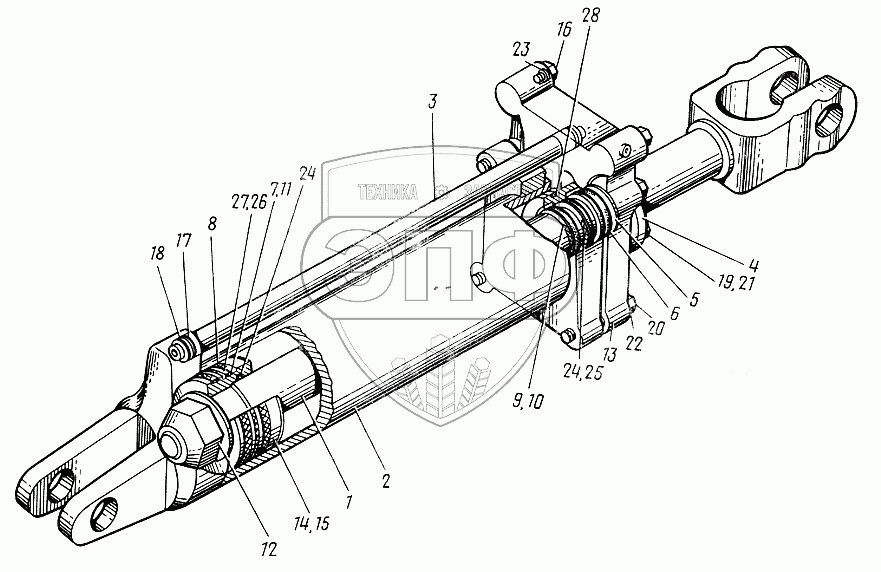 Каталог запасных частей к технике: ЮМЗ-6КЛ, (6КМ). Гидроцилиндр