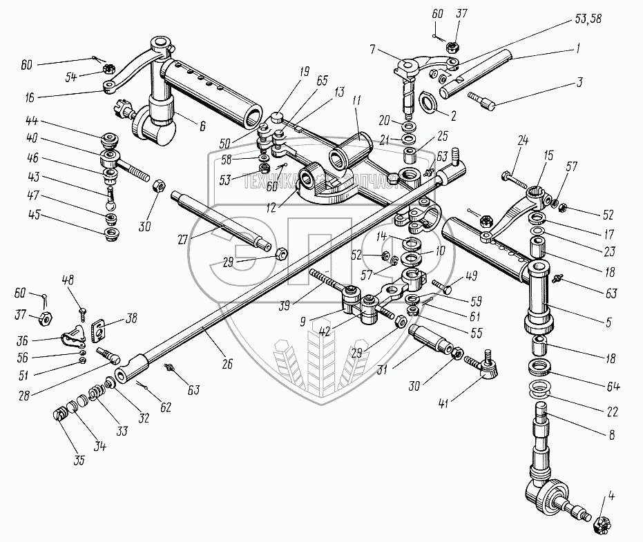 Каталог запасных частей к технике: ЮМЗ-6КЛ, (6КМ). Ось передняя. Тяги рулевые