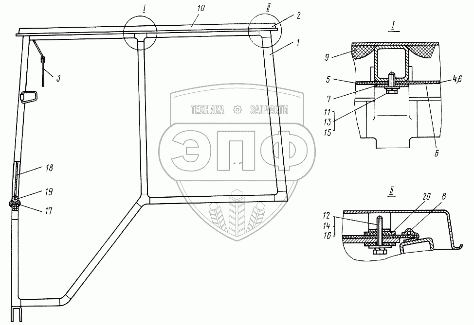 Каталог запасных частей к технике: ЮМЗ-6КЛ, (6КМ). Тент