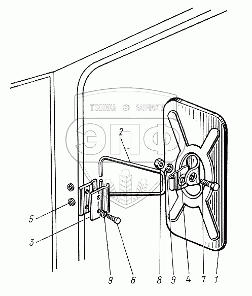 Каталог запасных частей к технике: ЮМЗ-6КЛ, (6КМ). Установка зеркала заднего вида