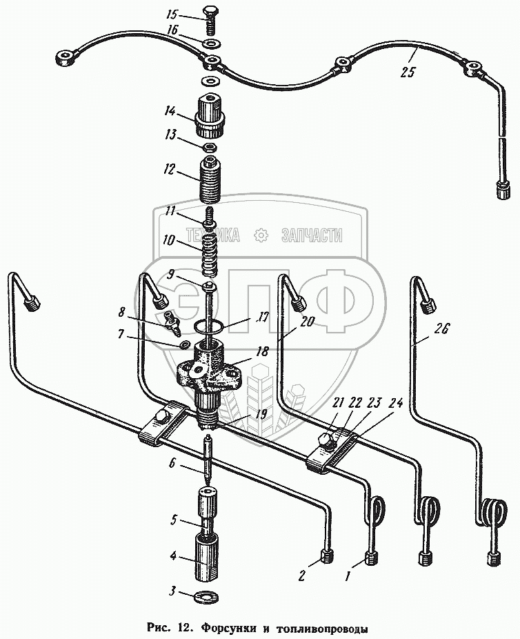 Каталог запасных частей к технике: ЮМЗ-6Л. Форсунки и топливопроводы