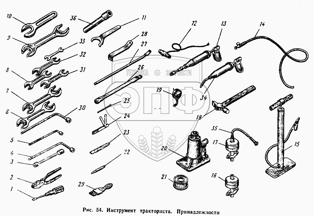 Каталог запасных частей к технике: ЮМЗ-6Л. Инструмент тракториста. Принадлежности