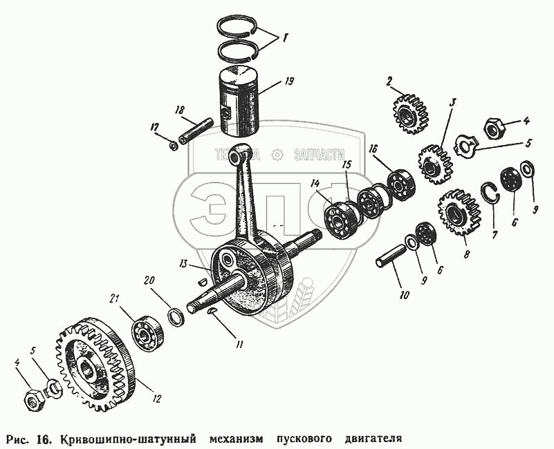 Каталог запасных частей к технике: ЮМЗ-6Л. Кривошипно-шатунный механизм пускового двигателя