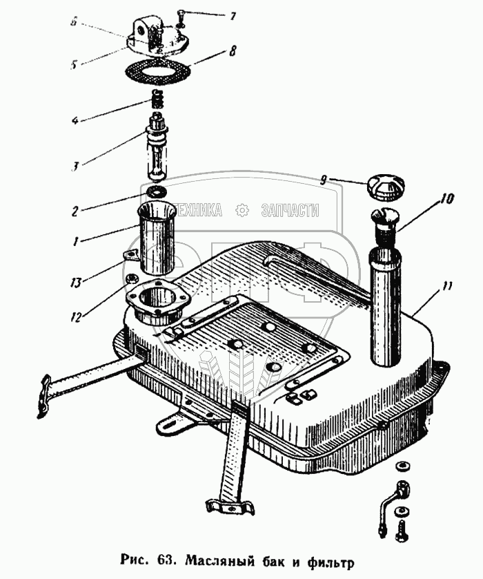 Каталог запасных частей к технике: ЮМЗ-6Л. Масляный бак и фильтр