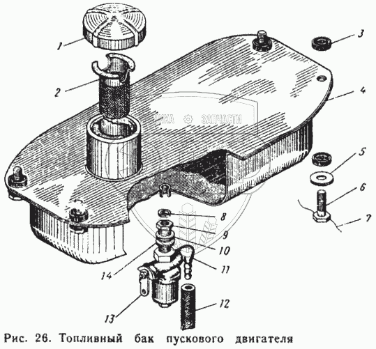 Каталог запасных частей к технике: ЮМЗ-6Л. Топливный бак пускового двигателя