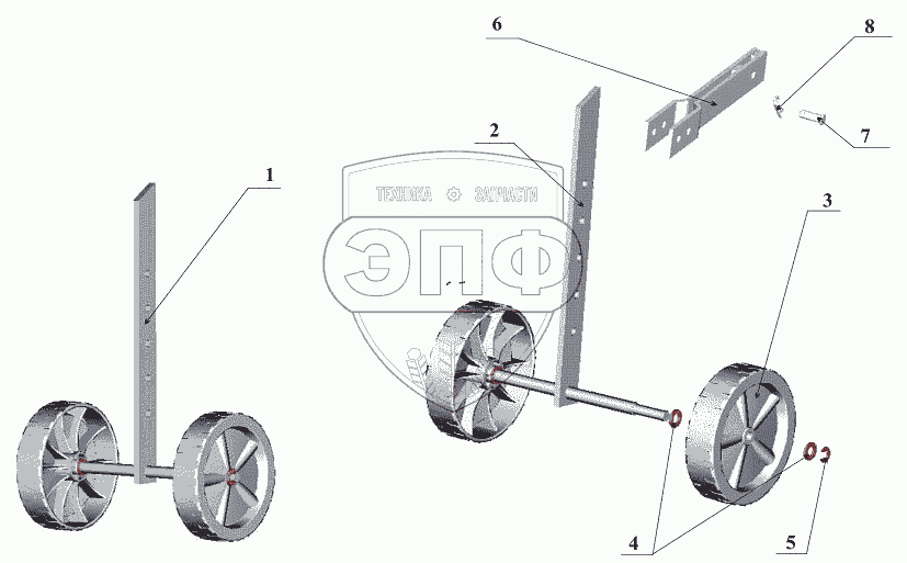 Каталог запасных частей к технике: ЗиД МК-265 "Мастер". Сошник с колесами